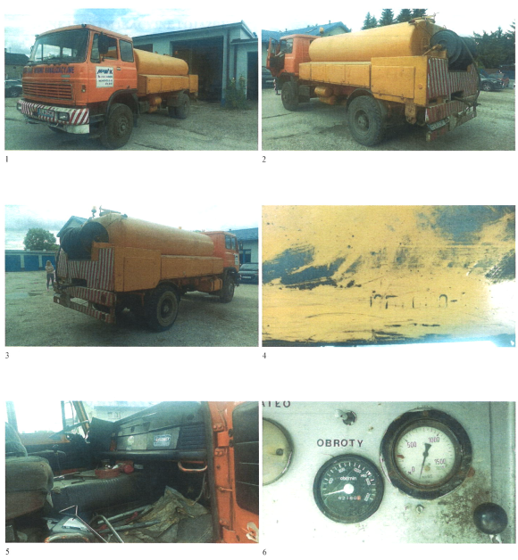Przedmiotowy pojazd posiada ważny przegląd techniczny (do dn. 12.11.2025 r.) oraz ubezpieczenie OC. Jest w stanie uszkodzonym. Posiada skorodowaną kabinę z uszkodzeniami mechanicznymi oraz wycieki z układu chłodzenia silnika. Brak tabliczki znamionowej. Nieszczelności hamulcowe układu pneumatycznego. Pojazd z niewielkim przebiegiem wg drogomierza ze względu na charakter wykorzystywania napędu silnika spalinowego do pracy pompy WUKO.